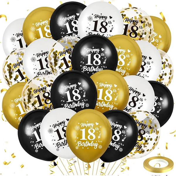 18. urtebetetze puxika sorta:Gure fabrikak kaleratutako 18. urtebetetze globoen multzoak paperezko puxikak, latexezko globoak, urtebetetze banderak, urtebetetze txartelak, zintak eta beste osagarri batzuk ditu. Kolore asko daude aukeran, hala nola urre beltza, urre berdea, urre arrosa, urre urdina, etab. Kolore hauek goi-mailako eta dotoreak dira, festa osoa dotoreagoa bihurtuz eta urtebetetze zeremonia zentzua gehituz. Gainera, pakete hau oso errentagarria da, 18. urtebetetze festa ahaztezin bat prezio merkean sortzeko aukera ematen dizu.