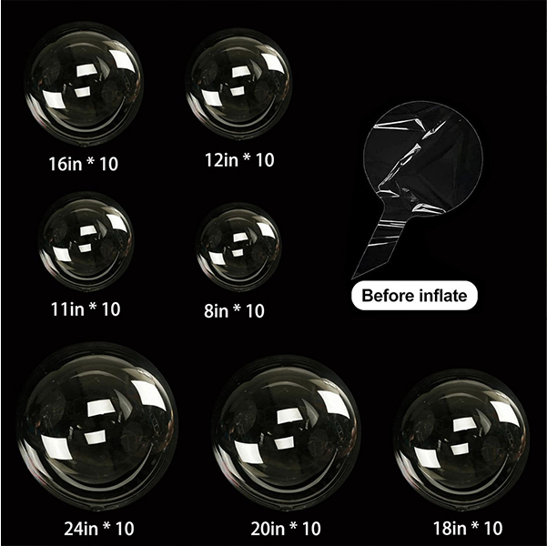 Koloretako burbuil globoak TPU, toxikoak ez direnak, berrerabilgarriak eta oso elastikoak dira. Eskuzko aire ponpa batekin puztu daitezke eta kristal globo garden hauek hainbat alditan egokiak dira, hala nola urtebetetze festak, haurtxoentzako dutxak, ezkontzak, Gabonak, Halloween, Urteberriko festak, graduazio ospakizunak eta beste.