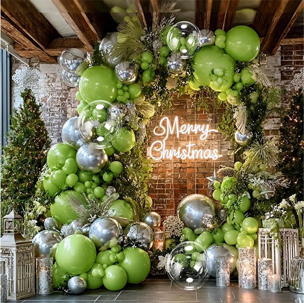 Gure Crystal Bobo Globo Arku multzoa koloreztatutako latex pilotekin erabil daiteke. Ez-toxikoa, ekologikoa eta malko erresistentea da. Eta, garland-multzo tipikoak ez bezala, hau da, tamaina desberdinetako globoak biltzen ditu. Tamaina handiko kristal bobo globoak erabiltzeak ezarritakoa are liluragarriagoa eta erakargarria da, zure gonbidatuetan inpresio iraunkorra utziz!