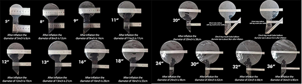 Lehen sortaz gain, diametroko bobo globo batzuk ere eskaintzen ditugu. Diametro handi hauek, bobo garden gardenek 30 hazbete (7,8 hazbete) neurtzen dituzte eta aho zabal eta zabal bat dute. Puxika puzgarriekin erabil daitezke plazetako panpinak, sorta handiak eta opariak betetzeko. Aurrez luzatutako bobo globoak normalean ahalegin handia behar du eskuz luzatzeko, beraz, gure globo biribil argiak bidalketa baino lehen makina-luzatzen dira, festa apaingarriak egiteko edozein unetan puzten ahal izateko.