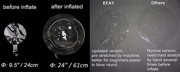 Aho zabaleko burbuila globo hauek eskuz luzatzeko ahalegin handia behar dute. Niun markak zehazki puxikak makinaren bidez luzatzen ditu bidalketa aurretik, denbora eta ahalegina puztatzerakoan aurreztuz. Emaitza hobeak eta globo forma biribilagoa lortzeko, airearen ponpa elektrikoa erabiltzea gomendatzen dugu.