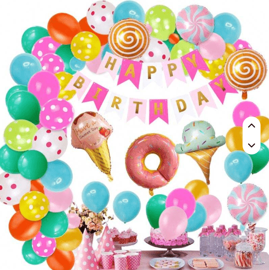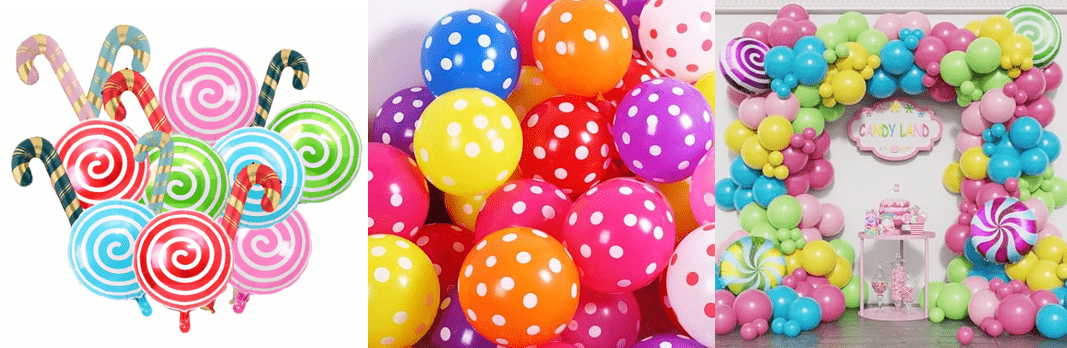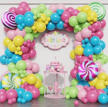 Gozokien gaiko globoen girlanden kit amets gozoko gozoki kolorearekin eta piruleta forma politarekin diseinuaren elementu nagusi gisa, estilo orokorra bizia eta gozoa da.