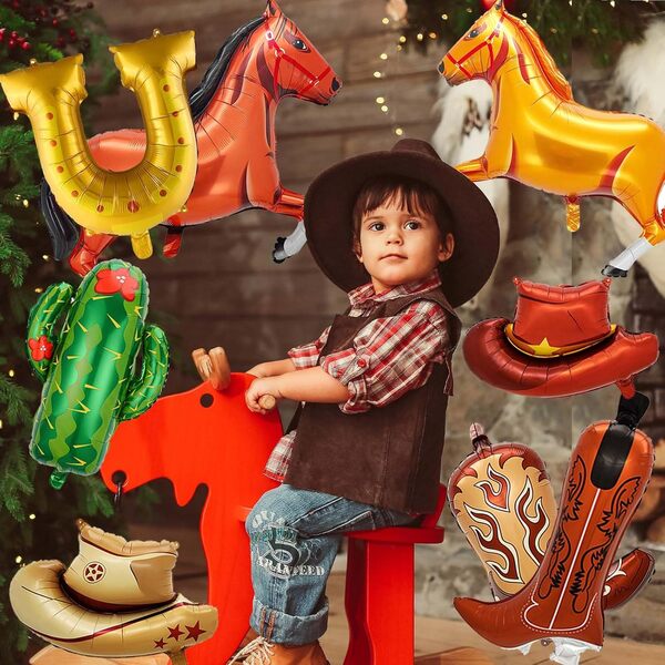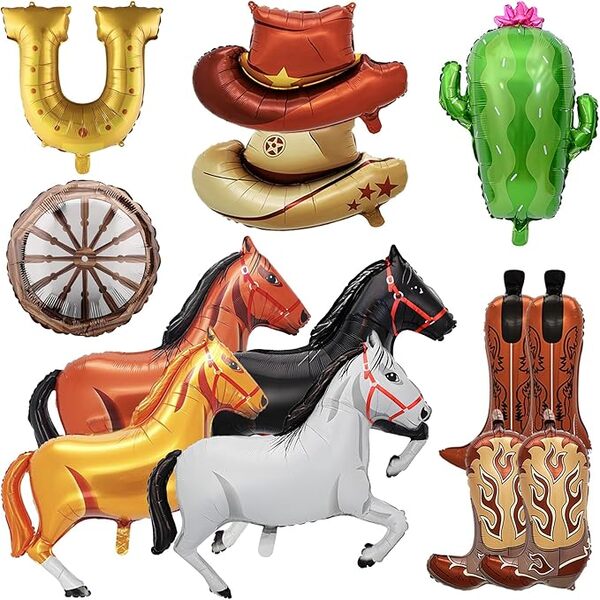 Diseinu ezberdinetan eskuragarri dago, txano eta bota politetatik hasi eta zaldi jostagarrietara, ferra-erraz eta kaktus errealetaraino: produktu hauek aukera ezin hobeak dira festa tematikoetarako, zinema gauetarako, urtebetetze jaietarako eta era guztietako jaietarako.Cowboy paperezko globoakBereziki diseinatutako kalitate handiko film konposatuz eginda daude. Erresistentea da eta nekez lehertuko da. Era berean, hainbat aldiz berrerabili dezakezu behar bezala biltegiratu ondoren. Kolore biziak dira eta adierazpen ahalmen handia dute. Hainbat konbinazio sortzeko erabil ditzakezu.Adibidez, 5-10 pz. paperezko globoak (zaldi estiloak, kapela estiloak, botak estiloak..), eta 60 pz. marroi, zuri, kolore beltzeko latexezko globoak eta beste osagarri batzuk (atzealdea, pankartak...) cowboy paperezko globoen garland sorta egiteko. Mendebaldeko amerikar kutsu indartsua gehi diezaioke zure festari, zuk zeuk cowboya izango bazina bezala sentitzeko aukera emanez. Urtebetetzeetan, jaiegunetan edo ekitaldietan erabil dezakezu. Mendebaldeko filmen zalea bazara, gai hau ezin hobea izango litzateke zuretzat. Cowboy paperezko festarako globoak erosteko aukera daude kostuak murrizten laguntzeko eta birsalmentaren etekinak areagotzen laguntzeko, gertaera-antolatzaileentzat, festetako hornidura-dendentzat eta saltzaileentzat aukerarik onena bihurtuz.