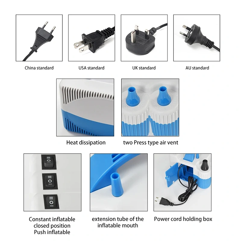 Europako eta Amerikako opor denboraldian (Halloween, Christmas): "Sartu 120V etxeko entxufe baten jabeak, ez du luzapen kableak edo egokitzaileak bilatu beharrik. 500 globo txikitan puztu ditzakezu 30 minututan, langileak kontratatuz baino hiru aldiz azkarragoa da." Alemaniako ezkontza enpresa batek Europako estandar sorta erosi zuenGlobo elektrikoaren ponpa. 36 hazbeteko foil globoak bete zituzten Berlingo kanpoko ezkontza batean eta etengabe lan egin zuten 4 orduz energia-porrotarik gabe. "Ponpa honen kalitatea egonkorra da". Erosketa egokia egin dugu. "