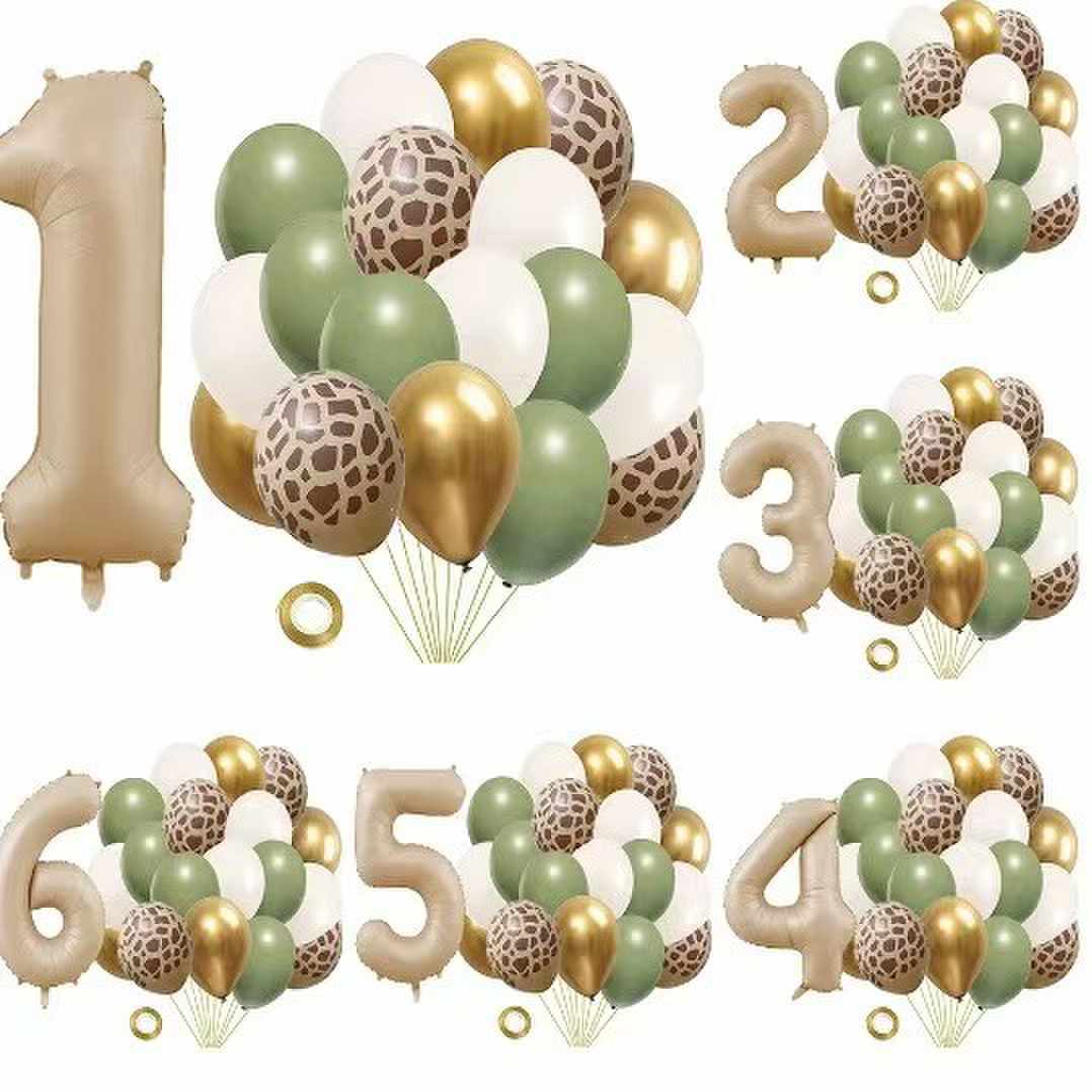 Eszena desberdinetako dekorazio beharrak asetzeko, hainbat konbinazio diseinu eskaintzen ditugu. Latex globo multzoak orokorrean 10-50 monokromoko globo monokromoak dituzte. Koloreak batez ere baso-laranja, berdea, marroia eta beste kolore batzuk dira. Haurrentzako festetarako eta basoetako gaietako apaingarriak egokiak dira. Enbalajea OPP poltsak eta paperezko txartel pertsonalizatuak ditu, ederrak eta praktikoak.