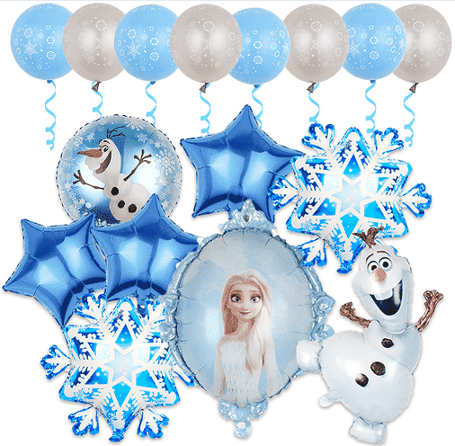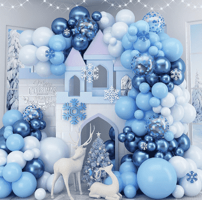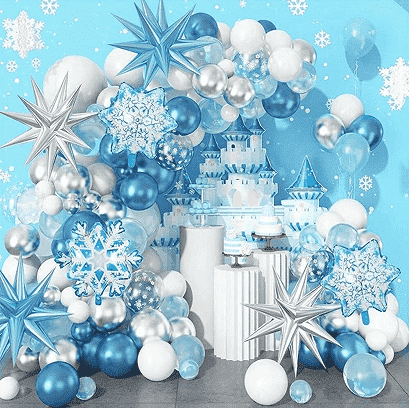 3.Puxika izoztuaknormalean hainbat tamaina edukipuxik izoztuak, paperezko puxika paregabeak, bat datozen zinta apaingarriak, puzgailuak, markatu gabeko kola-puntuak, instalazio-loturak eta beste osagarri batzuk geltoki batean diseinu-eskakizunak betetzeko. Osagai guztiak material seguru eta ingurumena errespetatzen duten materialekin eginda daude, haurrentzako jarduera-eszenetara guztiz egokituta. Trajeko globoen eredua arretaz lotzen da, Frozen-en pertsonaia-irudi klasikoa izotz eta elur elementu ameslariekin konbinatuz. Koloreak urdina, zuria eta zilarra dira, magia giro huts eta erromantikoa sortuz.