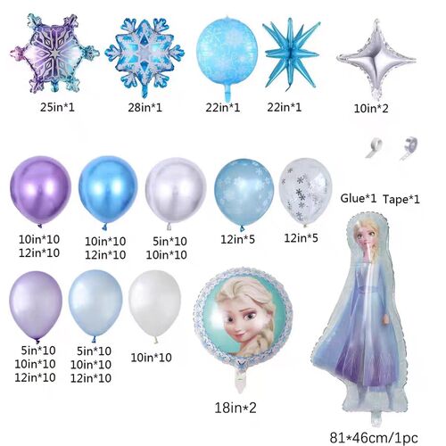 Paperezko puxikak Frozen gaikako globoen arku multzoaren zati nagusia dira. Printzesa buru-erretratua paperezko globoa, elurrezko panpina paperezko globoa barne hartzen dute batez ere. Zenbakizko paperezko globoa eta letra paperezko globoa ere gehitu daitezke festa giro handiagoa sortzeko urtebetetze festa estiloko apaingarriak nahi badituzu bezala.