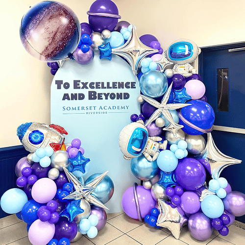 Pertsonalizatutako galaxia-gaiaren globo-girlanda oso erraza da NiuN®-n. Globoetarako edo paketeetarako den axola, globoetarako, tamainak eta koloreak alda daitezke. Globoez gain, globoen kitaren pakete-poltsa ere pertsonalizatu daiteke.