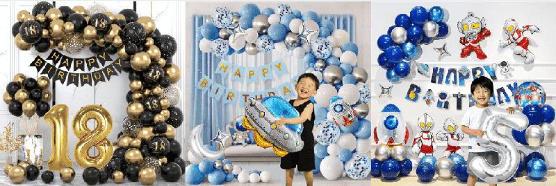 Urtebetetze zoriontsuaren globoen dekorazio-multzo honek latexezko globoak, paperezko globoak atzealdearekin eta mahai-zapiarekin konbinatzen ditu urtebetetze festaren eszena murgilgarria sortzeko koloreak bateratzearen bidez. Atzealdea eta mahai-zapia eszenaren tamainaren arabera pertsonaliza daitezke, eta estiloa eta eredua festaren gaiaren eta kolore sistemaren arabera pertsonaliza daitezke.
