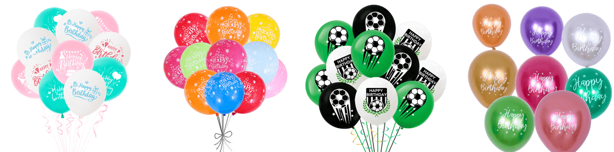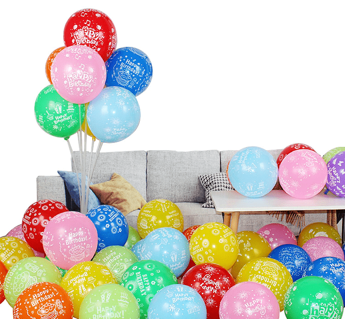 Gure Happy Birthday party inprimatzeko globoak latex naturalez eginak dira eta alergia probabilitate txikiarekin (ehuneko 0,5 baino gutxiago) desproteinizatu dira. Erabiltzaileak latexeko alergia larria badu, gomendatzen da paperezko serieko globoei lehentasuna ematea; erabili aurretik, pertsona sentikorrak globoaren gainazalarekin harremanetan jar daitezke 1-2 minutuz, eta ondoeza ez dagoela baieztatu ondoren erabili.