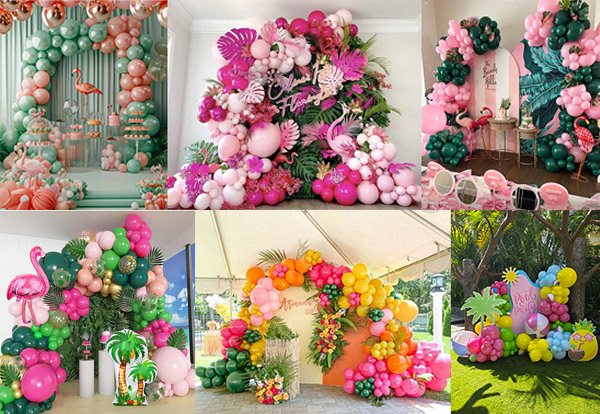 NiuN-en hawaiar gaikako flamengo tropikaleko globo-girarda kit ezin hobea da udako festetarako, hawaiar luo festetarako, flamenkoen festarako, urtebetetze jaietarako, igerilekuko eta hondartzako jaietarako, ezkongaietarako, ezkontzarako eta Oiasso gaiko beste ekitaldietarako. Arrosa distiratsua, laranja, horia, urdina eta berdea globo-girandak ezin hobeak dira globo tropikalen koroak edo atzealdeak sortzeko. Gure puxika tropikalaren arku kit egokia da edozein festatarako; Globo tropikalen arku koloretsu honek latexezko puxik biziak, monstera hostoen globoak eta palmondo-hostoak ditu: Hawaiiko globoen garland kit ezin hobea da festa tropikaletarako apaingarrietarako.