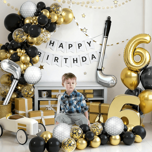 Globoez gain, osagarri batzuk ere gehi ditzakezu estiloa gehitzeko, hala nola, golf gaiaren atzealdea edo gaikako beste apaingarri batzuk. Kitko globoak ere erabil ditzakezu beste efektu batzuk sortzeko. Esaterako, paperezko globo multzo batean zuloa edo latexezko globo multzo batean zuloa. Horiek guztiek efektu ezin hobea izan dezakete zure festetan.