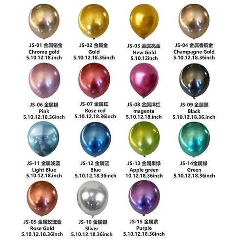 Globo metalikoak:Distira handiko ispiluaren akabera eta testura eta kolore deigarriak dituztenez, hauek dira festetako apainketetan, inprimaketa pertsonalizatuan eta abarretan erabiltzeko latexezko globo polifazetikoenak.