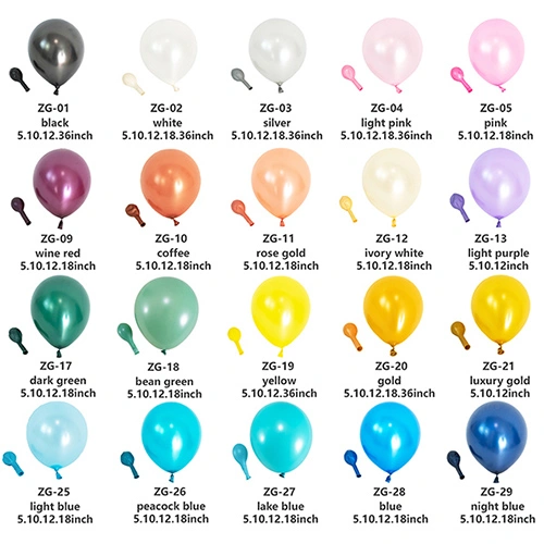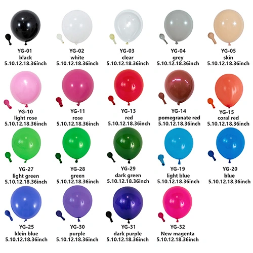 Gure latexezko globoak 5 hazbeteko, 10 hazbeteko, 12 hazbeteko, 18 hazbeteko eta 36 hazbetekoetan ekoizten dira. Baldintza bereziren bat baduzu eta puxikak pertsonalizatu behar badituzu, beste tamaina batzuetako ekoizpena ere antolatu dezakegu.