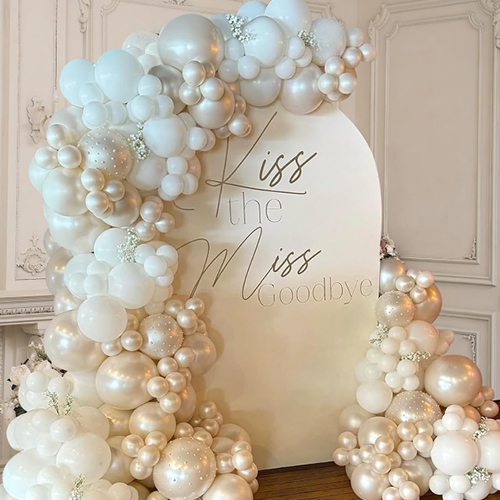 Ezkonberrien perlarako globoen arku kitak latexezko globoak eta erlazionatutako osagarriak ditu. Bi geruza bikoitzeko puxika zuri perladun mota daude, baita perla adabakiak ere, zure puxikaren dekorazioa goi mailakoa izan dadin diseinatuta. Gehituperla puxikakGonbidatuak harrituko dituen konpromiso festarako atzealde ederra sortzeko. Gurelatexezko puxikak%100 kautxu naturalez eginda daude. Globoaren ehundura lodia, apurtzen ez dena, kolore hutsa. Kalitate handiko latexari esker, puxika ondo luzatzen da puzten denean. Helioa gehitzeak puxika flotatu dezake, ez dago puxikaren ihesaz kezkatu beharrik eta haien bizitza luzea da.