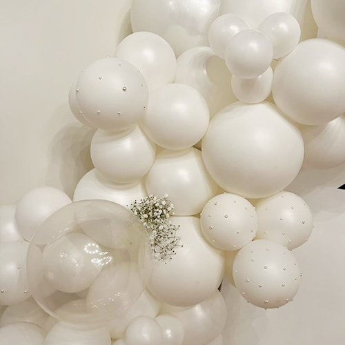 Erosi duten bezeroen %50en iritzietan oinarritutaperla ezkongaien dutxa globo arkuagure lantegian, egin zuten puxika-girlanda ez zela goiko irudia bezain distiratsua pentsatu zuten. Galdetu ondoren bakarrik jakin zuten bezero batzuek ez zutela geruza biko puxikak erabiltzen. Hori dela eta, ezkongaien dutxako globo-arkua bezero guztientzat distiratsuagoa izan dadin, tutoretzak bereziki egin ditugu bezeroek ikusteko.