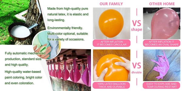 Ehundura sendoagoa: Kalitate handiko lehengaiak eta teknologia aurreratuak erabiltzeagatik, gure latexezko globo bakoitzak ehundura oso sendoa eta kolore aberatsak ditu.