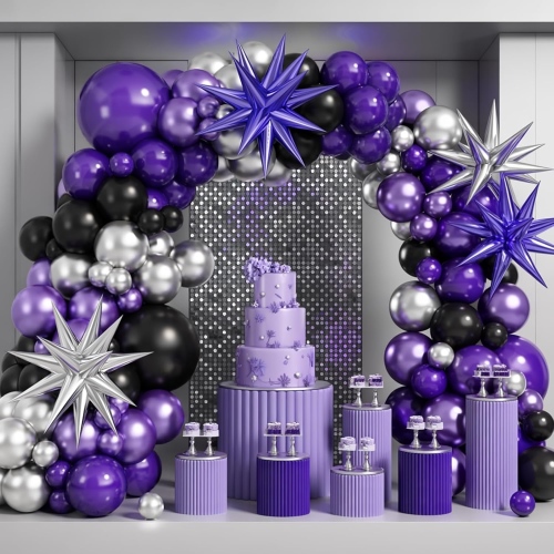 Kalitate handiko globo moreak eta beltzezko girlanden kitek globo beltzak eta moreak nahasteko eta lotzeko aukera ematen dute. Globo beltzak eta moreak zilarrezko globoekin edo zilarrezko paperezko globoekin konbina daitezke globoen garland arku kitak nabarmentzeko. Aproposa da graduazio-festetan, helduen zeremonietan eta mugarrien beste ospakizunetan, gaztetasunari agur esan eta helduaroan sartzen den erritual zentzua jasotzen duena. Globo beltzak eta moreak ere konbina daitezke urrezko globoekin edo urrezko paperezko globoekin. Aproposa da urteurren korporatiboak eta denda berrien irekiera bezalako ekitaldietarako, profesionaltasuna eta sofistikazioa dariolako marka handiko eta entzutetsuaren irudia transmititzen duen bitartean. Globo urdinekin ere parekatu daitezke itxura futurista bat sortzeko. Globo-kit hauek bereziki egokiak dira kirol elektronikoetarako, modan eta zientzia-fikzioko jaietarako, ikusmen-inpaktu deigarria eskainiz.