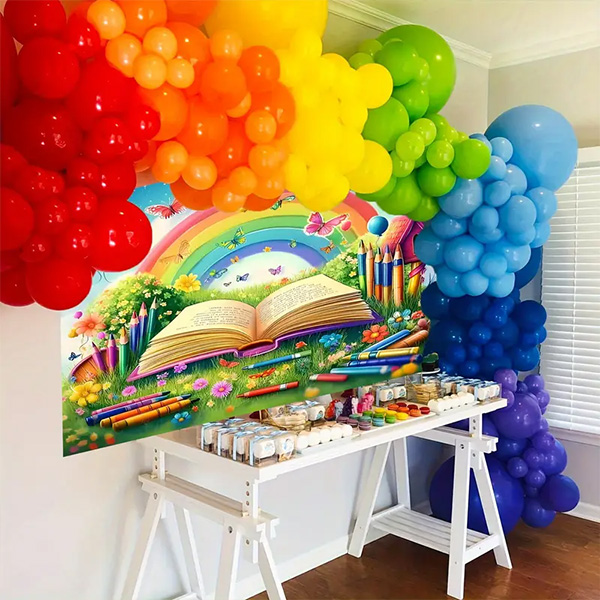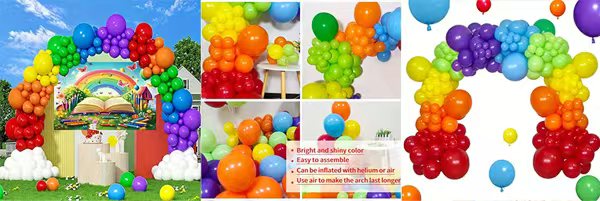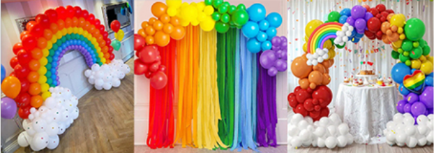 Nun zoragarriaostadarraren gaikako festetako apaingarriek ostadarraren zazpi kolore biziak dituzte, zure festari kolore ukitu bat gehituz. Erabili ortzadarraren puxika-arku-kit hau ortzadarraren puxika-arku, atzeko planoa, erdigunea eta sarrera-aretoa sortzeko ortzadarraren gaikako festarako.