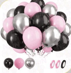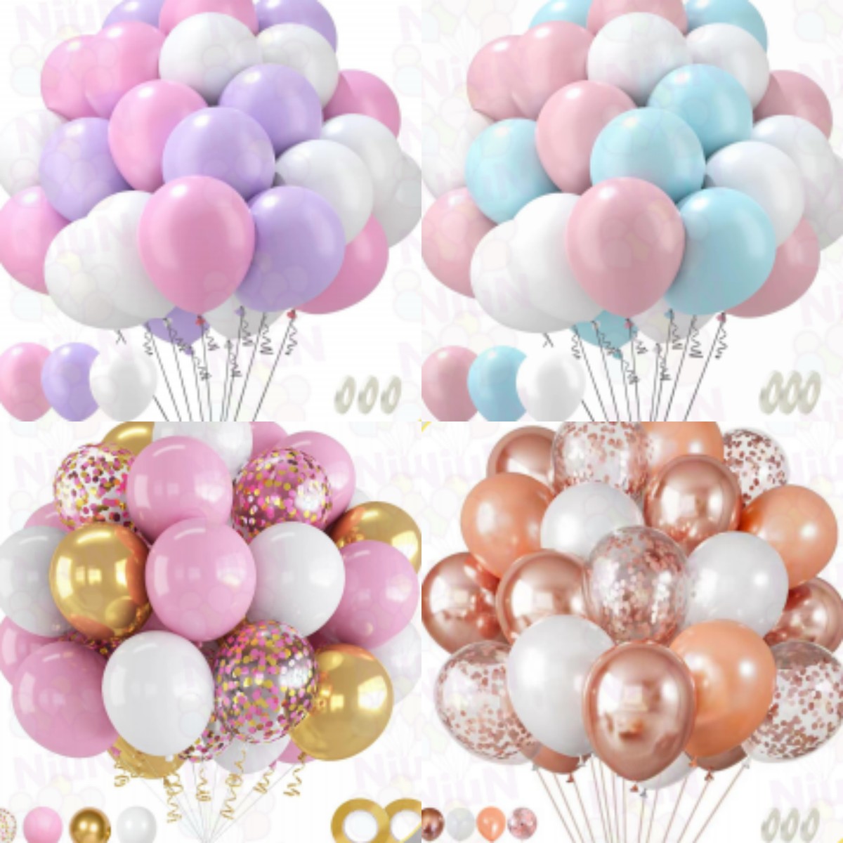 Oinarrizko zehaztapenak: koloretako globoak + konfeti globoak + zintak