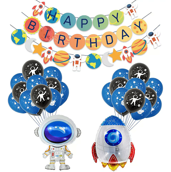 Espazioko astronauta latexezko globoen aukeraketa latexeko 100 lehengai natural, segurua eta ingurumena errespetatzen duena usainik gabekoa, nazioarteko segurtasun ziurtagiriaren bidez, umeekin harreman estua dutenentzat egokia. Puxikak luzagarritasun bikaina du, puztu ondoren osoa eta biribila, ez da apurtzen erraza eta iraunkortasun handia. Koloreak batez ere espazio sakoneko urdina, zeru izar beltza, Esne Bidea zuria eta Marte gorria dira, astronauten siluetekin, planeten orbitarekin, suzirien arrastoekin eta beste eredu inprimatu batzuekin apainduta. Estiloa oso koherentea da espazioko gaiarekin eta aintzatespen maila handia du. Mahaigaina eta horma bereiz dekoratu ditzake, eta paperezko globoekin ere konbina daiteke dekorazio maila aberasteko. Dekorazio-aukera ezin hobea da haurren urtebetetze festetarako, eskoletako zientzia-jarduerak eta merkataritza guneetako espazio gaietarako erakusketak egiteko, eta espazio giro ameslari eta fresko bat erraz sortzen du.