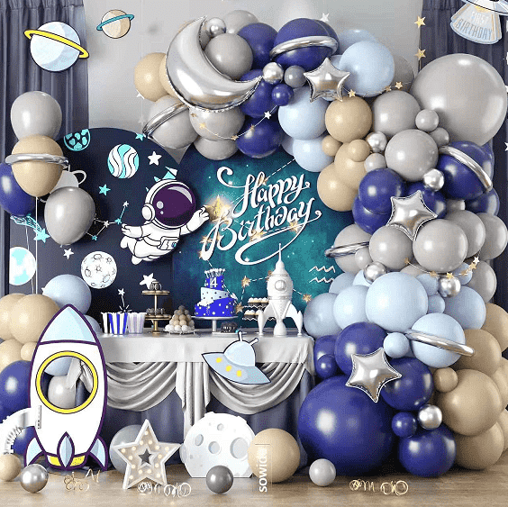 Espazioko astronauta globoen garland multzoa funtsezko produktua da espazioko gaiaren eszena murgilgarria sortzeko, espazioko elementuak eta globoen artea ezin hobeto integratzen dituena. Trajeak astronautak, suziriak, planeta-formako paperezko globoak, koloretako latexezko globoak eta osagarriak, hala nola, aire-ponpak, zintak, euskarri finkoak eta abar ditu. Koloreetan aberatsa eta maila desberdina da, eta diseinua zentzu futuristaz eta esplorazio-interesez beteta dago. Garland malgutasunez erabil daiteke festa-arkuen eta atzeko hormen dekorazio gisa, eta globo digitalekin eta espazio-gaien panelekin ere uztartu daiteke eszena esklusiboak sortzeko, hala nola urtebetetze faseak eta jarduerak erregistratzeko eremuak. Trajeak norberaren parekatzearen konplexutasuna kentzen du, kaxatik atera daiteke, instalatzeko erosoa eta eraginkorra da, globoen kalitate bikaina eta aire estutasun handia du, festa giroa denbora luzez mantendu dezake eta espazio bakoitza irudimenezko espazioa esploratzeko oinarri bihurtzen du.