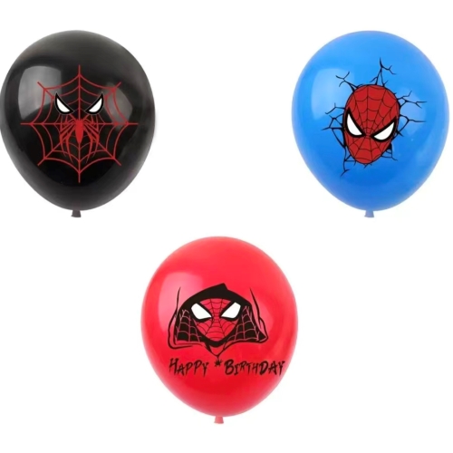 Spiderman inprimatutako puxikek Spider-Man-en gorri, urdin, zuri eta beltz ezagunak hartzen dituzte kolore nagusi gisa. Koloreen talka ausarta da. Efektu erakargarria indartsua da. Superheroiaren gai lodi bat sentiarazi dezakete denbora gutxian.