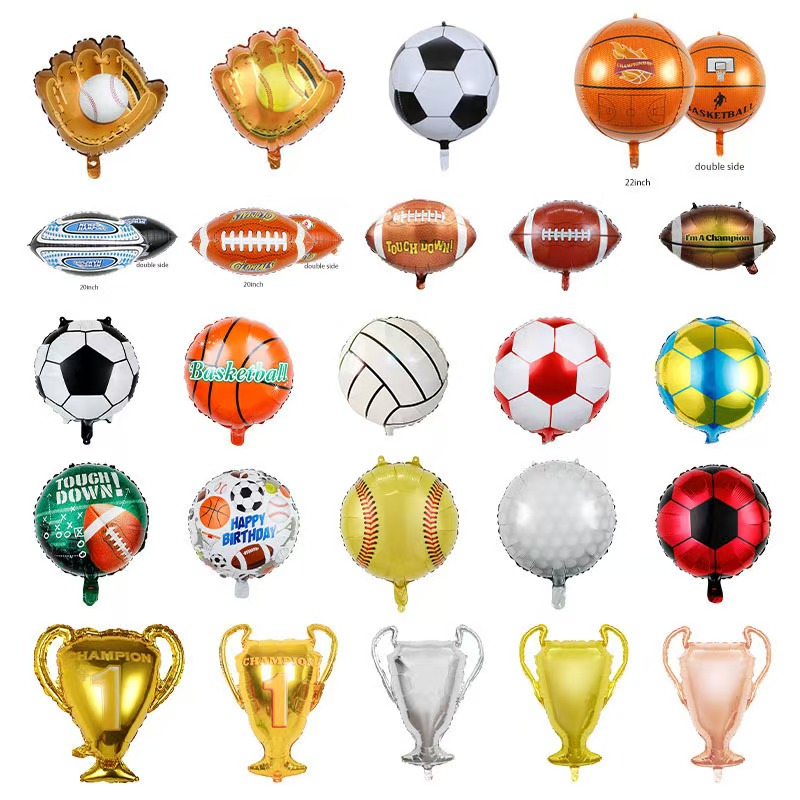Diseinuak kirol-ekipamenduen modelizazioa, saskibaloia, futbola, dumbbells, garaikurrak, kirol-figuren siluetak, "IRABAZPENA", "GOLA" eta "TXAPELDUNA" eta beste pizgarri gutun batzuk hartzen ditu. Tamaina handiko (18-36 hazbeteko) globo bakar batek ez du bat-etortze konplexurik behar, eta ikusmen-foku bilaka daiteke jardueraren erdian edo sarreran zintzilik dagoenean. Bereziki egokia da eskala handiko ekitaldietarako animatzen diren eszenetarako, kanpoko kirol-jardueretarako eta campuseko kirol-jokoetarako, eszenako ilusioa berehala pizteko.