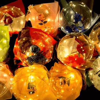 Arrosa bobo globoa arrosa bobo globoarekin konbinatzen duen sormen produktua da. Arrosak tratatzen dira, hala nola, fluffy eta beteak oratu, bobo globo garden batean sartu eta, ondoren, bobo globoa puztu. Horren ostean, lore-zutoina eta bola-ahoa zinta itsasgarriarekin finkatuko dira, eta lerro argidun bola-euskarri bat instalatuko da. Argi-lerroak argi-modu desberdinak ere baditu. Horrez gain, pilota puxika luzez, maitagarrien hariz, zintaz eta abarrez apainduko da, itxura ederragoa eta delikatua izan dadin. Batez ere San Valentin egunean, urtebetetzean, ezkontza eta beste apainketa erromantikoetarako erabiltzen da, opari gisa ere eman daiteke.