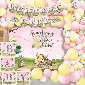 Winnie the Pooh puxika-arku-girando kit gure fabrikako saltzen den produktua da, hainbat estilo eta kolore aberatsekin. Kit hau Winnie the Pooh latexezko globoen tamaina ezberdinez osatuta dago batez ere. Gure puxikak kautxu naturalez eta kalitate handiko aluminiozko paperezko materialez eginda daude, eta segurtasun-proba zorrotzak gainditu dituzte, ingurumena errespetatzen dute eta ez dira toxikoak, konfiantzaz erabil ditzakezu. Bat datozen hartz mahai-tresnak, atzeko oihalak, puxikak eta abar ere baditugu, lehengai berdeekin eta ingurumenarekin errespetatzen dituztenak. Hondoko oihalak argazki-kabina edo postre-mahai baterako atzeko plano dotore gisa balio du, eta dekorazio-paper-kutxak, berriz, ukitu dotorea ematen dio opari pantailari edo festa-opari txiki bati. Winnie the Pooh puxika-arku-girando kit ezin hobea da urtebetetzeetarako, genero-agerraldietarako, ezkontzak, haurtxoen bataioak, urteurrenak eta bestelako festa tematikoetarako. Lagunen topaketa bat edo familia topaketa bat izan, esperientzia ahaztezina ekar dezake zuretzat eta zure lagunentzat.